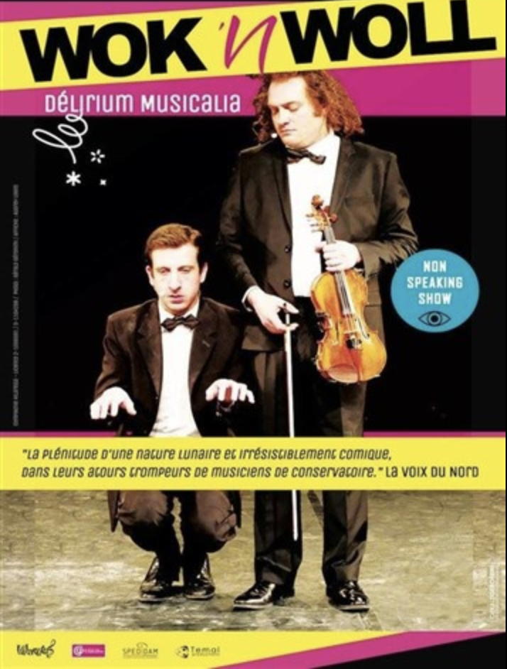 Un véritable cartoon mélodieux présenté par des musiciens aussi virtuoses qu’hilarants ! Un spectacle musical clownesque qui ose mêler les grandes œuvres classiques aux Gipsy-Kings, Elvis, les Rolling Stones ou AC/DC avec pour toile de fond un rapport burlesque irrésistible. Deux musiciens géniaux qui maitrisent parfaitement leurs instruments et nous bluffent complètement par leurs performances.